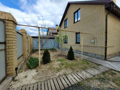 Отличный сад: туи, елки, сосны, вишня, черешня, яблоня, груша, персики, клубника, крыжовник, виноград, розы и т.д.