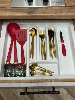 Есть вся необходимая посуда: тарелки, кружки, стаканы, столовые приборы, чай, сахар.