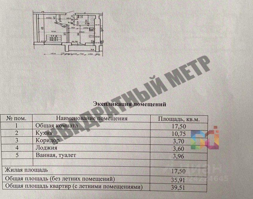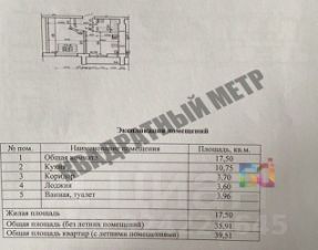 Площадь квартиры с лоджией- 39,51 м2