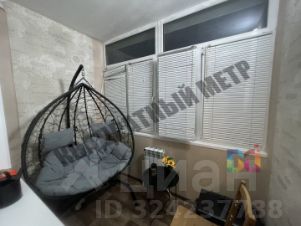 Застекленная лоджия с утеплением, выполнена как лаундж-зона для отдыха.
