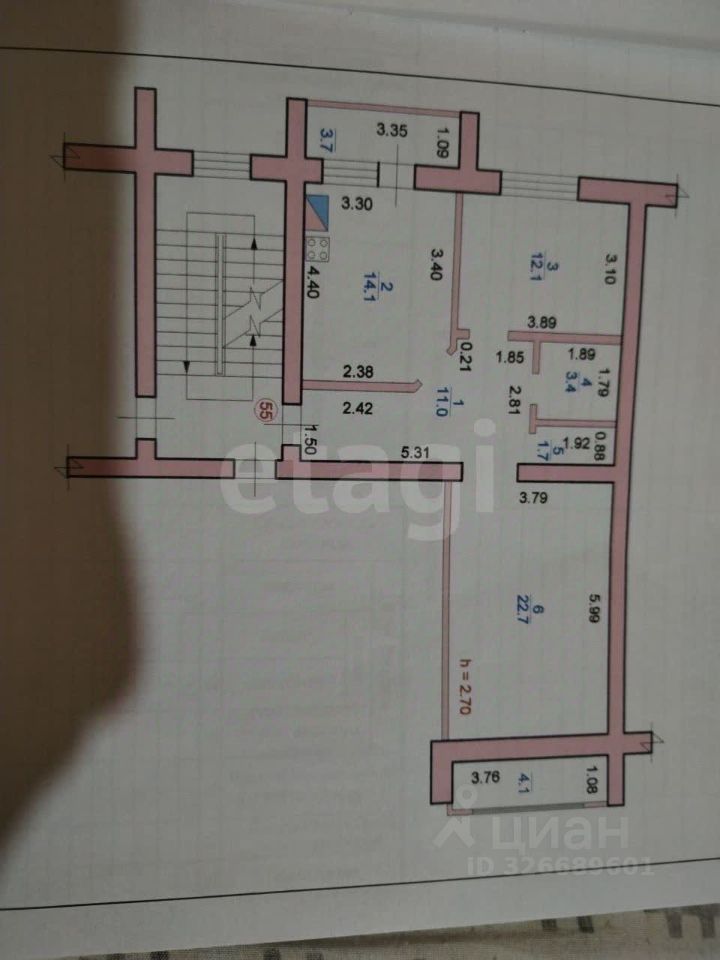• Высота потолков: 2.7 м