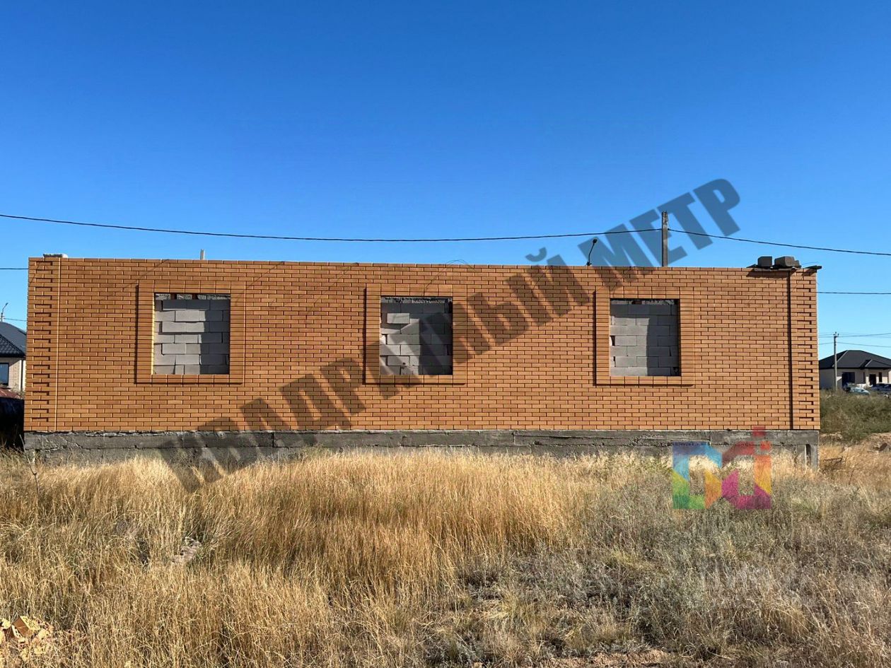 Стены шлакоблок, обложен облицовочным керамическим желтым кирпичом.